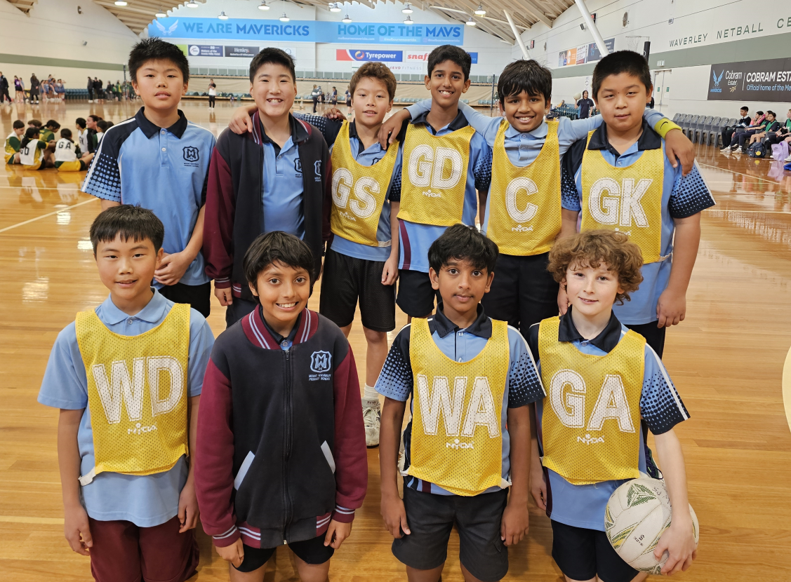 On 30th July, 10 of our Year 6 boys competed in the Boys' Netball Division at Waverley Netball Centre in Wheelers Hill. We won our first 3 games and advanced to the Semi Finals against Brandon Park Primary School, where we won 26-9. We then capped off the remarkable run by winning the Grand Final against Jells Park Primary School with a score of