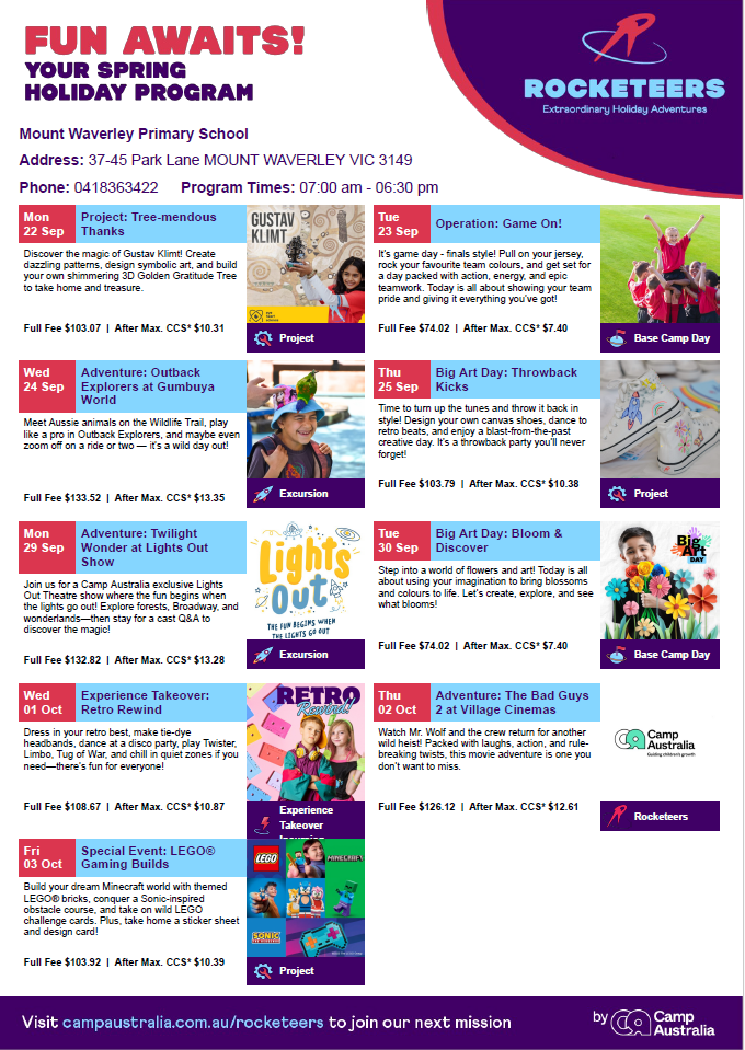 Step into a world of imagination and inspiration as Mount Waverley Primary School proudly presents its upcoming Art Exhibition, showcasing the vibrant creativity of our students across all year levels.