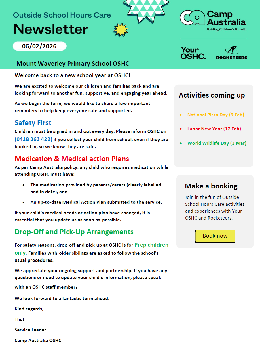 For new applicants, if you have any questions, please do not hesitate to contact the School Office at 9807 1480, or email mount.waverley.ps@education.vic.gov.au