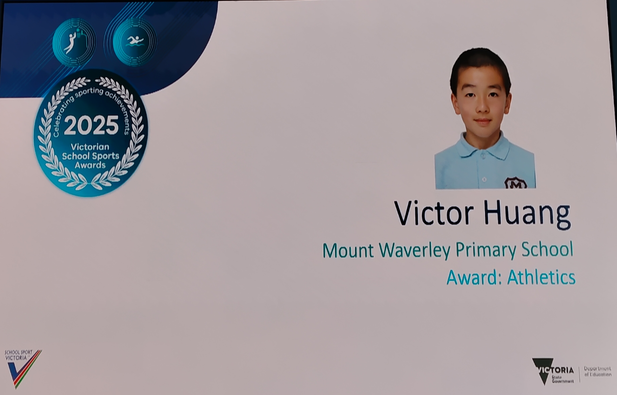 Our Year 6 student, Victor Huang, was invited to the 2025 Victorian School Sports Awards, held at the Melbourne Cricket Ground (MCG) on 25 March 2026.